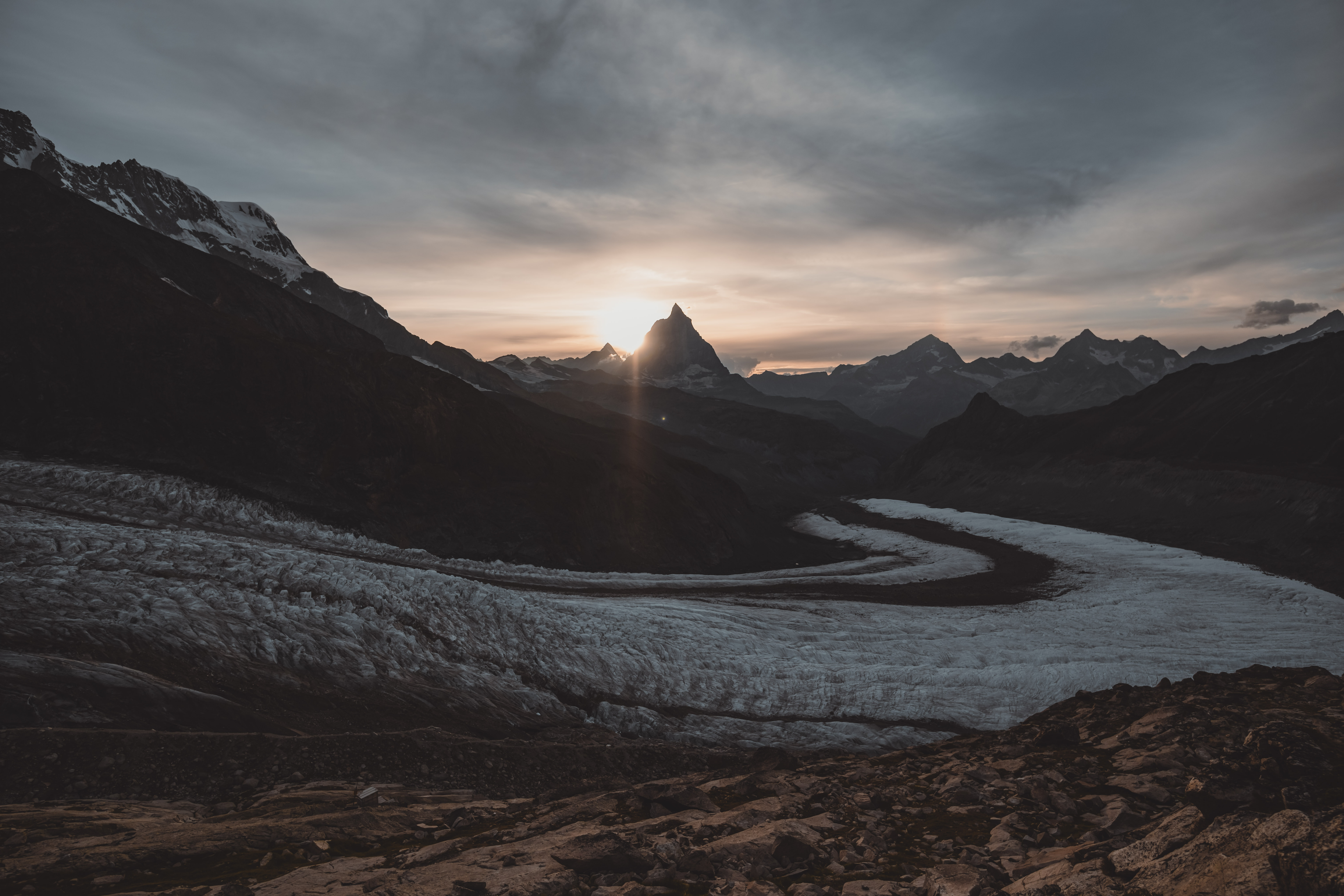 Arriving at the hut felt like a reward. We dropped our packs, kicked back, and enjoyed cold beers while soaking in the incredible surroundings. The view from the hut is nothing short of breathtaking—an endless panorama of jagged peaks, including the legendary Matterhorn looming in the distance. After a hearty dinner, we stepped outside to catch the sunset, a sight we’ll never forget. The sun dipped behind the Matterhorn, casting a warm glow across the peaks, turning the snow and ice a brilliant shade of orange and pink. It was one of those moments where the beauty of nature leaves you speechless.